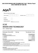 AQA GCSE DESIGN AND TECHNOLOGY Unit 1 Written Paper 2025 VERIFIED QP AND MS