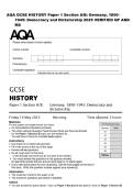 AQA GCSE HISTORY Paper 1 Section A/B: Germany, 1890 1945: Democracy and Dictatorship 2025 VERIFIED QP AND MS