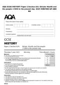 AQA GCSE HISTORY Paper 2 Section A/A: Britain: Health and the people: c1000 to the present day 2025 VERIFIED QP AND MS