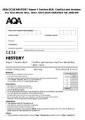 AQA GCSE HISTORY Paper 1 Section B/A: Conflict and tension: the First World War, 1894–1918 2025 VERIFIED QP AND MS