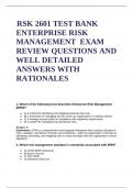 :RSK 2601 TEST BANK ENTERPRISE RISK MANAGEMENT EXAM REVIEW QUESTIONS AND WELL DETAILED ANSWERS WITH RATIONALES
