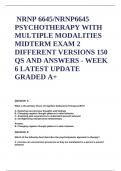 WALDEN UNIVERSITY NRNP 6645/NRNP6645 PSYCHOTHERAPY WITH MULTIPLE MODALITIES MIDTERM EXAM 2 DIFFERENT VERSIONS 150 QS AND ANSWERS - WEEK 6 LATEST UPDATE GRADED A+