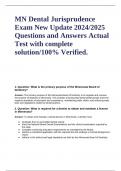 MN Dental Jurisprudence Exam New Update 2024/2025 Questions and Answers Actual Test with complete solution/100% Verified.