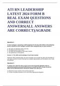 ATI RN LEADERSHIP LATEST 2024 FORM B REAL EXAM QUESTIONS AND CORRECT ANSWERS(ALL ANSWERS ARE CORRECT)|AGRADE