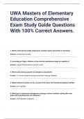 UWA Masters of Elementary Education Comprehensive Exam Study Guide Questions With 100% Correct Answers.
