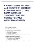 CA PSI SITE LIFE ACCIDENT AND HEALTH OR SICKNESS EXAM (LIFE AGENT) 2025 EXAM COMPLETE 250+QUESTIONS AND CORRECT DETAILS (VERIFIED ANSWERS)