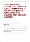 ADULT RESIDENTIAL FACILITY (ARF) EXAM 2025 ACTUAL EXAM COMPLETE 300+ QUESTIONS WITH DETAILED VERIFIED ANSWERS (100% CORRECT ANSWERS)
