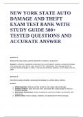 NEW YORK STATE AUTO DAMAGE AND THEFT EXAM TEST BANK WITH STUDY GUIDE 500+ TESTED QUESTIONS AND ACCURATE ANSWERS