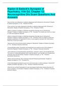 Kaplan & Sadock's Synopsis of Psychiatry, 11th Ed. Chapter 12: Neurocognitive D/o Exam Questions With All Correct Answers
