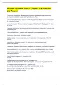 Pharmacy Practice Exam 1 Chapters 1-4 Questions and Answers Community Pharmacies - Answers-retail pharmacy that have several pharmacists. usually connected and located right by the doctors office. .independent pharmacies - Answers-community pharmacy that is owned and operated by one pharmmacists .chain pharmacies - Answers-national or regional that is found in the department store. ex; hyvee .franchise pharmacies - Answers-combine characteristics of independent business and large r...