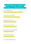 Intro to Sports Management Quizzes Questions and Answers | Latest Version | 2025/2026 | Correct & Verified