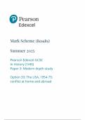 2025 PEARSON EDEXCEL GCSE HISTORY PAPER 33 MARK SCHEME (1HI0/33: Modern depth study Option 33: The USA, 1954–75: conflict at home and abroad)