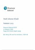 2025 PEARSON EDEXCEL GCSE HISTORY PAPER B3 MARK SCHEME (1HI0/B3: BOOKLET B3: Henry VIII and his ministers, 1509–40)