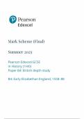 2025 PEARSON EDEXCEL GCSE HISTORY PAPER B4 MARK SCHEME (1HI0/B4: BOOKLET B4: Early Elizabethan England, 1558–88)