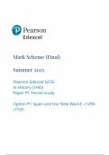 2025 PEARSON EDEXCEL GCSE HISTORY PAPER P1 MARK SCHEME (1HI0/P1: BOOKLET P1: Spain and the ‘New World’, c1490–c1555)