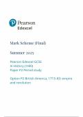 2025 PEARSON EDEXCEL GCSE HISTORY PAPER P2 MARK SCHEME (1HI0/P2: BOOKLET P2: British America, 1713–83: empire and revolution)