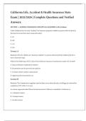 This document contains the full collection of California Life, Accident, and Health Insurance state exam questions with verified correct answers for the 2025/2026 testing cycle. It covers essential exam domains, including life insurance basics, health policy provisions, accident and disability coverage, state regulations, and insurer/legal responsibilities. The material follows current California Department of Insurance standards and supports comprehensive exam preparation.
