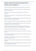 This document contains a comprehensive review for the SHRM certification exam, including practice questions with verified correct answers. It covers key SHRM exam domains such as HR competencies, behavioral competencies, people management, workplace, and organizational effectiveness. The material is suitable for final exam preparation and self-testing to assess readiness for the SHRM-CP or SHRM-SCP exam.