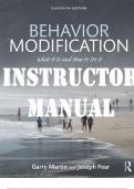 INSTRUCTORS MANUAL for Behavior Modification; What It Is and How To Do It 11th Edition by Garry Martin & Joseph Pear. ISBN 9780429670268, ISBN-13 978-0815366546. (All 29 Chapters Plus Practicum Exercises)