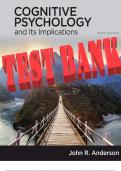 TEST BANK for Cognitive Psychology and Its Implications 9th Edition by John Anderson. ISBN 9781319106997, 1319106994. ISBN- ISBN-. All Chapters 1-14.TABLE OF CONTENTS Chapter 1 The Science of Cognition Chapter 2 Perception Chapter 3 Attention and Performance Chapter 4 Mental Imagery Chapter 5 Representation of Knowledge Chapter 6 Human Memory: Encoding and Storage Chapter 7 Human Memory: Retention and Retrieval Chapter 8 Problem Solving Chapter 9 Expertise Chapter 10 Reasoning Chapter 11 Decisio...