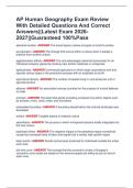 AP Human Geography Exam Review With Detailed Questions And Correct Answers||Latest Exam 2026 2027||Guaranteed 100%Pass