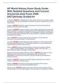 AP World History Exam Study Guide With Detailed Questions And Correct Answers||Latest Exam 2026 2027||Already Graded A+