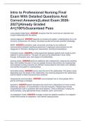 Intro to Professional Nursing Final Exam With Detailed Questions And Correct Answers||Latest Exam 2026 2027||Already Graded A+||100%Guaranteed Pass