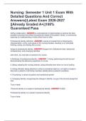 Nursing: Semester 1 Unit 1 Exam With Detailed Questions And Correct Answers||Latest Exam 2026-2027 ||Already Graded A+||100% Guaranteed Pass