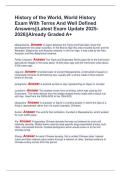 History of the World, World History Exam With Terms And Well Defined Answers||Latest Exam Update 2025 2026||Already Graded A+