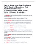 World Geography Practice Exam With Detailed Questions And Well Verified Correct Answers||Latest Exam 2025 2026 ||Already Graded A+