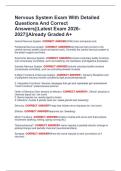 Nervous System Exam With Detailed Questions And Correct Answers||Latest Exam 2026 2027||Already Graded A+