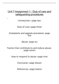 This is a distinction grade assignment regarding Duty of care and safeguarding procedures for Unit 7 of Health and Social Care. The case studies that I used are the Merryvale Residence and the Zebra Ward. I hope this helps :)
