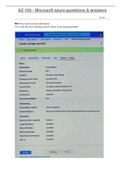 Terrie En esta página, encontrarás todos los documentos, paquetes y tarjetas que ofrece el vendedor Terrie. 346 Documentos 0 Tarjetas de estudio 0 Paquetes Community 2 Seguidores 0 Siguiendo 1 Comentarios recibidos 1 0 0 0 0 2 año hace • gabriellemendez ATI Care of Children Online Practice 2019 A with NGN. 346 artículos Todo Documentos Tarjetas de estudio Paquetes Lo más vendido El más nuevo Puntuación C180 Intro to Psychology Questions and Answers. (0) $14.49 0x vendido C180 Intro to Psychology Questions and Answers. i x Examen • 5 páginas • por Terrie • subido 2023 Vista rápida i x nursing pharmacology • nursing pharmacology C180 Introduction to Psychology Study Guide. (0) $15.49 0x vendido C180 Introduction to Psychology Study Guide. i x Examen • 16 páginas • por Terrie • subido 2023 Vista rápida i x nursing pharmacology • nursing pharmacology C182 Intro to IT Practice Test with Answers Latest 2022.2023. (0) $14.99 0x vendido C182 Intro to IT Practice Test with Answers Latest 2022.2023. i x Examen • 4 páginas • por Terrie • subido 2023 Vista rápida i x nursing pharmacology • nursing pharmacology C251 Accounting capstone Questions and Answers Latest. (0) $13.99 0x vendido C251 Accounting capstone Questions and Answers Latest. i x Examen • 8 páginas • por Terrie • subido 2023 Vista rápida i x nursing pharmacology • nursing pharmacology AZ 104 RENEWAL EXAM QUESTIONS AND ANSWERS 2022 2023. (0) $15.99 0x vendido AZ 104 RENEWAL EXAM QUESTIONS AND ANSWERS 2022 2023. i x Examen • 21 páginas • por Terrie • subido 2023 Vista rápida i x Nursing Pediatrics • Nursing Pediatrics AZ 900 Azure Fundamentals Exam. (0) $13.99 0x vendido AZ 900 Azure Fundamentals Exam. i x Examen • 18 páginas • por Terrie • subido 2023 Vista rápida i x Nursing Pediatrics • Nursing Pediatrics AZ-104 - Microsoft azure questions & answers. (0) $14.99 0x vendido AZ-104 - Microsoft azure questions & answers. i x Examen • 235 páginas • por Terrie • subido 2023 Vista rápida i x Nursing Pediatrics • Nursing Pediatrics AZ-104 Azure Administrator Associate Study Stack. (0) $12.49 0x vendido AZ-104 Azure Administrator Associate Study Stack. i x Examen • 23 páginas • por Terrie • subido 2023 Vista rápida i x Nursing Pediatrics • Nursing Pediatrics C168 WGU Critical Thinking and Logic. (0) $13.49 0x vendido C168 WGU Critical Thinking and Logic. i x Examen • 7 páginas • por Terrie • subido 2023 Vista rápida i x CNA - Certified Nursing Assistant • CNA - Certified Nursing Assistant C180 Intro to Psychology Questions and Answers. (0) $15.49 0x vendido C180 Intro to Psychology Questions and Answers. i x Examen • 5 páginas • por Terrie • subido 2023 Vista rápida i x CNA - Certified Nursing Assistant • CNA - Certified Nursing Assistant 1 ... 20 21 22 ...