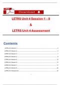 This document provides a complete summary of LETRS Unit 4, Sessions 1–8, with a focus on phonics, decoding, word recognition, and spelling instruction. It covers the structure of the English language, instructional routines, and strategies for supporting foundational reading skills. Essential for educators implementing evidence-based literacy practices in early reading instruction.
