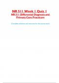 NR 511 Week 1 Quiz 1 NR 511 Differential Diagnosis and Primary Care Practicum