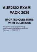 This document provides an updated AUE2602 exam pack for the 2026 assessment period, including exam-style questions with clear and accurate solutions. It is designed to support effective revision and exam preparation by focusing on key course concepts and commonly assessed topics.