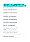 This document contains Irene Gold Microbiology exam questions with fully correct and verified answers tailored for the 2026 exam period. It covers core microbiology topics, including microorganisms, infection control, and laboratory principles, to support effective exam preparation and confident performance.