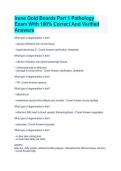 This document contains Irene Gold Boards Part 1 Pathology exam questions with fully correct and verified answers covering essential pathology concepts tested in the examination. It is designed to support focused exam preparation by reinforcing disease mechanisms, diagnostic principles, and clinical correlations.