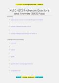 This document includes exam-focused questions and well-explained answers for NUSC 4272 Exam 1, covering advanced nutrition topics typically tested in the first assessment. It serves as a comprehensive study aid to review key concepts, strengthen understanding, and prepare efficiently for the exam.