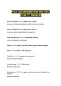 This document contains exam-focused questions with 100% correct answers for PHAR 100, covering essential pharmacy and pharmacology concepts assessed throughout the course. It serves as a clear and structured study resource to support revision, reinforce understanding, and prepare effectively for exams.