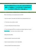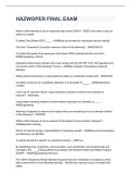 This document contains the latest HAZWOPER Final Exam questions with 100% correct and fully verified answers. It covers essential OSHA HAZWOPER topics such as hazardous materials identification, site safety and control, PPE, decontamination procedures, emergency response, and worker health and safety requirements. The material is graded A+ and designed for reliable final exam review and confident preparation.