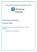 This document provides an indicative mark scheme for Edexcel A Level Music Paper 3 (June 2026), outlining how marks are awarded across the assessment criteria. It supports understanding of expected responses, levels of achievement, and examiner-style marking guidance for performance, composition, and appraisal elements. The material is suitable for revision, self-marking, and exam technique improvement.