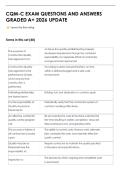 This document contains updated CQM-C exam questions and answers aligned with the 2026 Certified Quality Manager (CQM-C) exam outline. It covers key domains such as leadership, quality management systems, strategic planning, customer-focused organizations, process management, and performance measurement. The material is graded A+ and designed to support effective exam preparation and concept mastery.