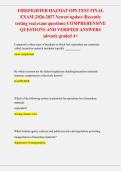 This document contains the latest Firefighter HAZMAT Operations (OPS) Final Exam questions based on recently tested real exam content for 2026–2027. It includes comprehensive questions with verified correct answers covering hazard recognition, risk assessment, defensive control actions, PPE, decontamination, incident command, and firefighter safety at the operations level. The material is already graded A+ and designed for confident exam and certification preparation.