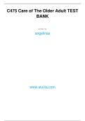TEST BANK FOR Western Governors University CARE OF THE ELDERLY C475 CARE OF THE OLDER ADULT TEST BANK
