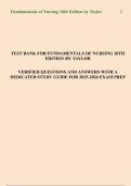 Download the Fundamentals of Nursing, 10th Edition by Taylor Test Bank with verified questions and answers. Includes a dedicated study guide designed for 2025–2026 exam preparation to help nursing students excel in quizzes, midterms, and finals.