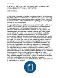 Unit 19 P6 - review the team’s overall effectiveness, together with your contribution to achieving the goals, receiving and providing feedback to othe