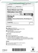 OFFICIAL JUNE 2024 PEARSON EDEXCEL LEVEL 3 GCE BIOLOGY A 9BNO/01 ADVANCED PAPER 1 MERGED QUESTION PAPER AND MARKING SCHEME 100% GUARANTEE