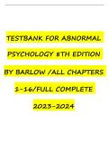 TESTBANK FOR ABNORMAL PSYCHOLOGY 8TH EDITION BY BARLOW /ALL CHAPTERS 1-16/FULL COMPLETE