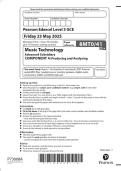 Pearson Edexcel Level 3 GCE Music Technology Advanced Subsidiary COMPONENT 4: Producing and Analysing MAY 2025 combined Question Paper and Mark scheme